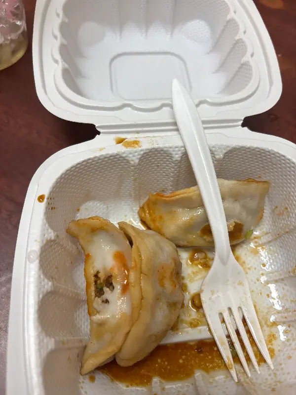 드디어 기다리고 기다리던 군만두가 나왔습니다. 노릇하게 구워진 만두는 보기만 해도 군침이 돌았습니다. 젓가락으로 조심스럽게 만두를 집어 한 입 베어 물자, 바삭한 겉피와 촉촉한 속이 환상적인 조화를 이루었습니다. 입안 가득 퍼지는 육즙은 정말 감동적인 맛이었습니다. 10개에 4.5달러라는 저렴한 가격이 믿기지 않을 정도였습니다.