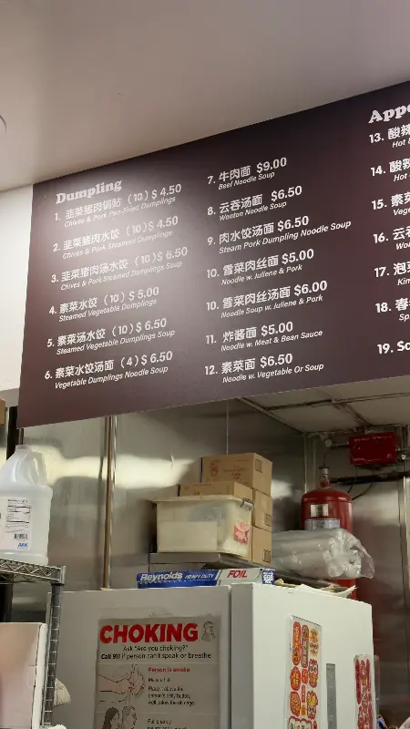 드디어 노스 덤플링 간판이 눈에 들어왔습니다. 작고 아담한 가게는 소박한 매력을 뽐내고 있었습니다. 가게 안은 이미 많은 사람들로 북적였지만, 다행히 테이블 하나가 비어 있어 곧바로 자리를 잡을 수 있었습니다. 메뉴판을 보니 만두, 면 요리, 팬케이크 등 다양한 메뉴가 있었고, 가격은 정말 믿을 수 없을 정도로 저렴했습니다.