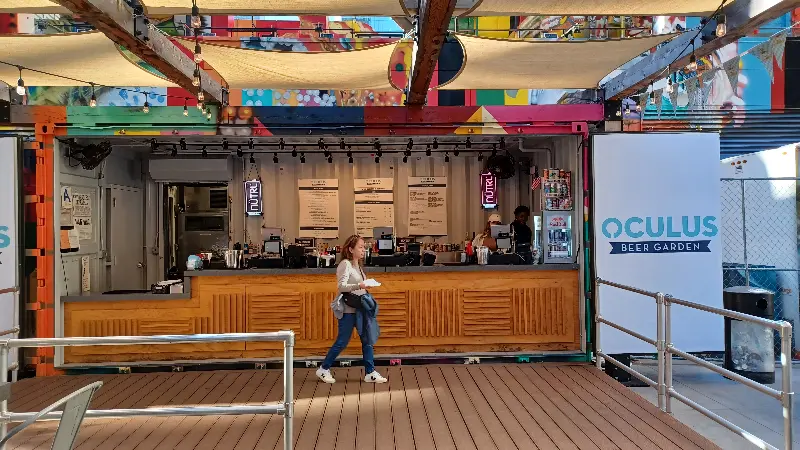 특히 석양이 질 무렵, 오큘러스 비어 가든은 더욱 아름다운 풍경을 자랑합니다. 붉게 물든 하늘 아래, 맥주를 마시며 여유를 즐기는 사람들의 모습은 한 폭의 그림 같았습니다. 라이브 음악이 흘러나오는 날에는 더욱 특별한 분위기를 만끽할 수 있습니다. 뉴욕의 낭만적인 밤을 경험하고 싶다면, 오큘러스 비어 가든을 방문해보세요.