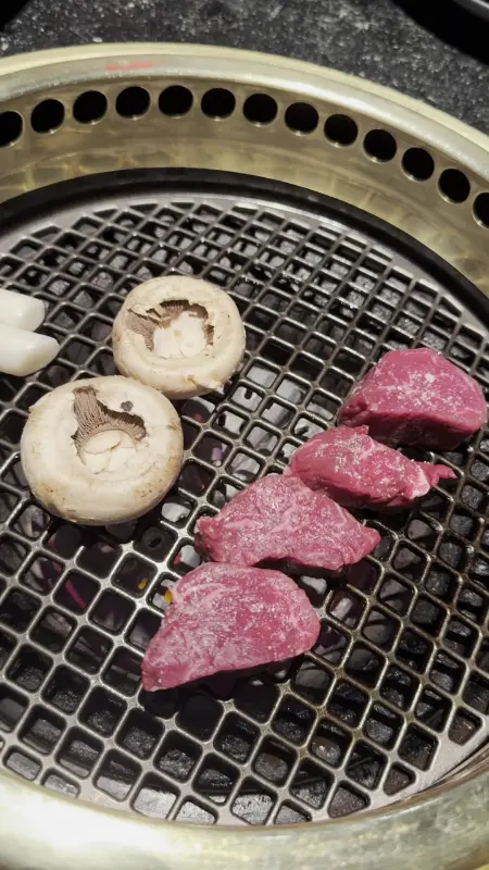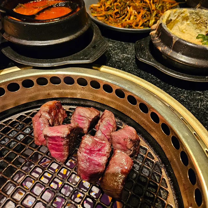 숯불 위에 올려진 고기는 지글거리는 소리를 내며 맛있게 익어갔다. 윤기가 흐르는 겉면과 촉촉한 속살의 조화는 시각적으로도 훌륭했다. 첫 입을 베어 무는 순간, 입안 가득 퍼지는 풍부한 육즙과 고소한 풍미는 그야말로 환상적이었다. 최고급 한우는 아니었지만, 아메리칸 소고기 특유의 풍미를 제대로 느낄 수 있었다. 특히 이곳만의 특별한 소스와 함께 먹으니 더욱 맛있었다.