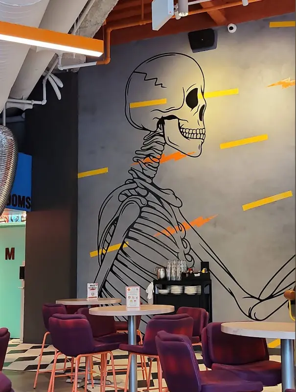 해골 그림이 그려진 벽면. 독특한 분위기를 자아낸다.