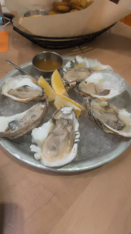 신선한 굴과 튀긴 피클. 맥주와 함께 즐기기 좋은 메뉴다.