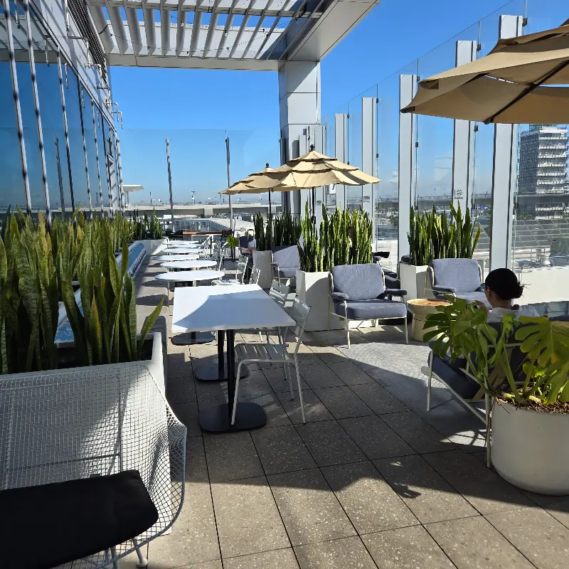 유나이티드 클럽의 또 다른 매력은 바로 탁 트인 야외 테라스입니다. 맑은 하늘과 시원한 바람을 맞으며 휴식을 취할 수 있는 공간입니다. 특히, 비행기 이착륙 장면을 감상하며 시간을 보내는 것도 특별한 경험이었습니다.