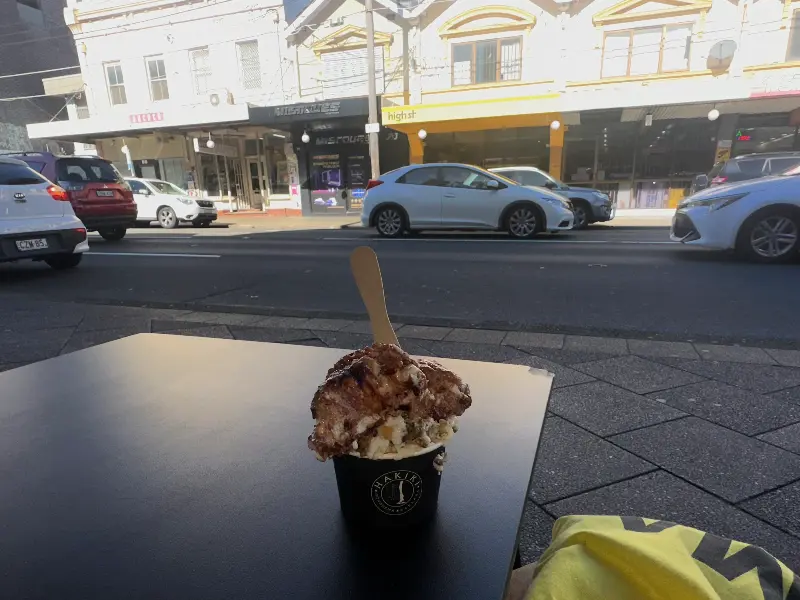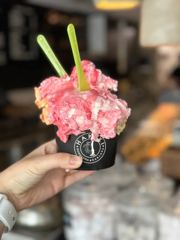 길거리에서 즐기는 달콤한 휴식, 바클라바 아이스크림 한 스쿱의 행복.