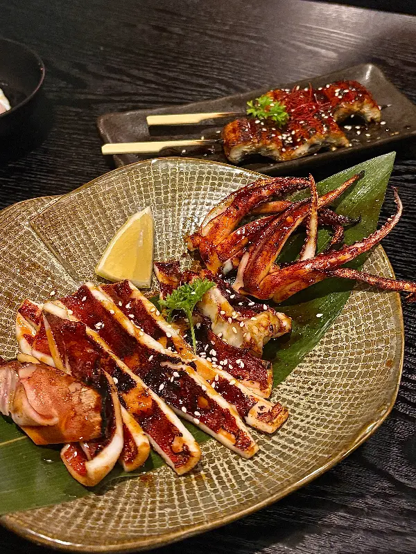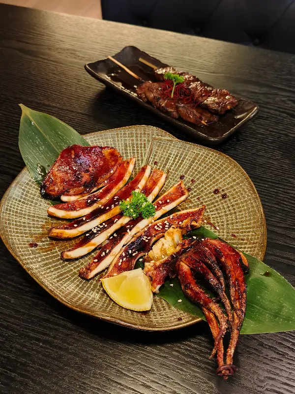 겉은 바삭하고 속은 촉촉한 오징어 구이는 씹을수록 고소한 맛이 입안 가득 퍼진다. 함께 제공되는 레몬즙을 살짝 뿌려 먹으면, 상큼한 맛이 더해져 더욱 풍성한 맛을 즐길 수 있다. 야키토리와 함께 사케 한 잔을 곁들이면, 마치 도쿄의 어느 이자카야에 와 있는 듯한 기분을 느낄 수 있다.