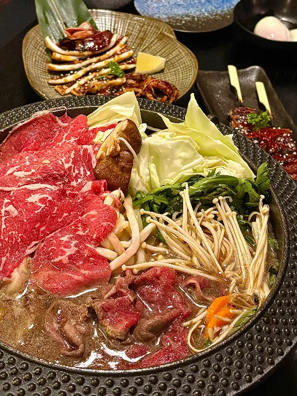 쿠리쿠에 오면 꼭 맛봐야 할 또 다른 메뉴는 바로 스키야키다. 특히 와규 스키야키는 신선한 와규가 산처럼 쌓여 나오는 압도적인 비주얼을 자랑한다. 달콤 짭짤한 육수가 끓기 시작하면, 와규와 각종 채소를 넣어 익혀 먹는 스키야키는 입안 가득 퍼지는 풍부한 맛이 일품이다.