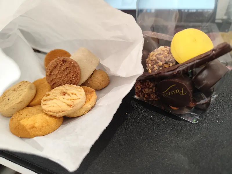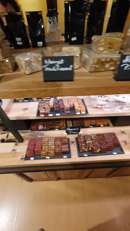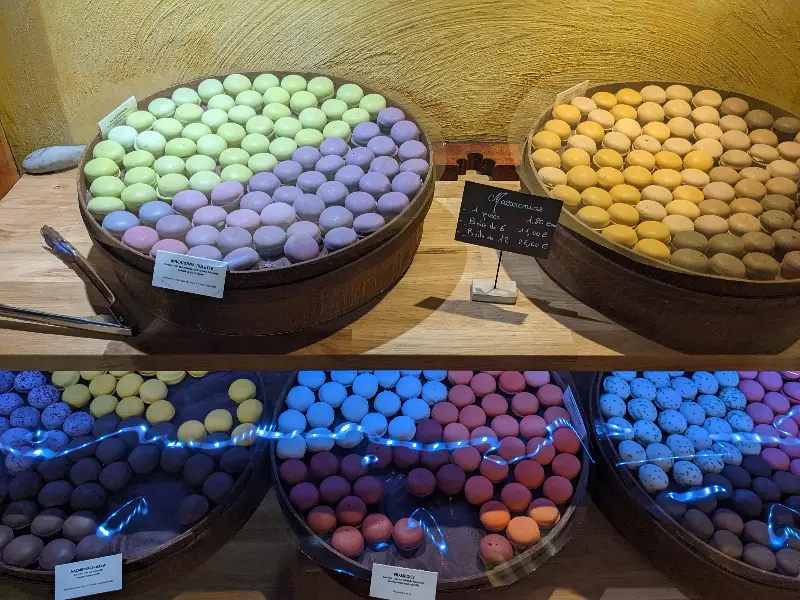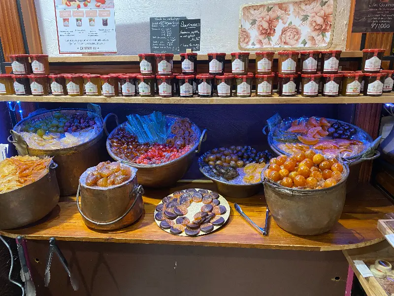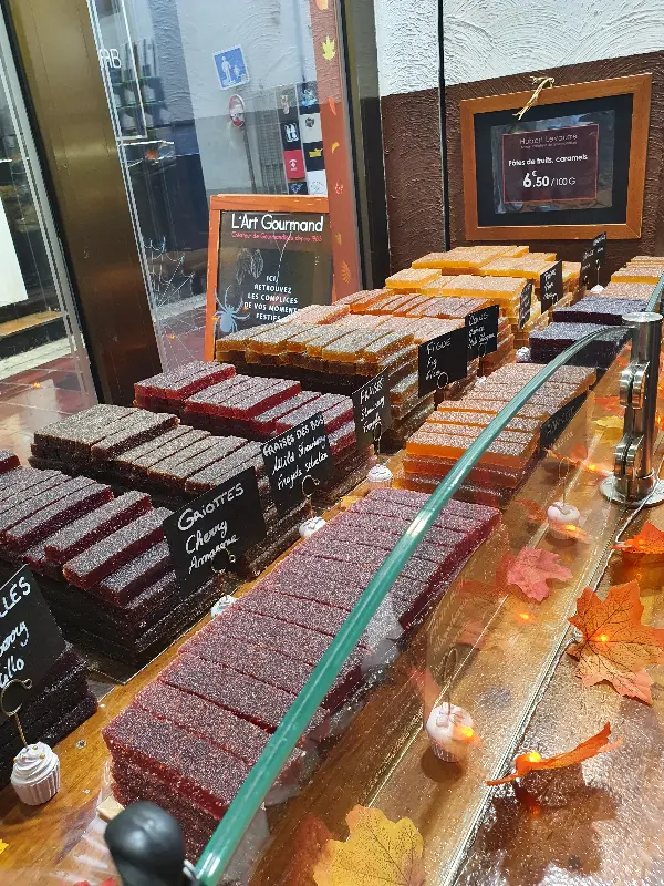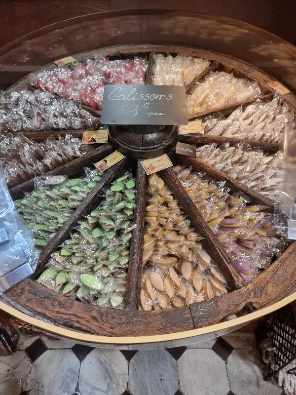 L’Art Gourmand에서는 칼리송도 맛볼 수 있습니다. 칼리송은 개별 포장되어 있어 구매가 매우 편리합니다. 취향에 맞게 다양한 맛을 선택할 수 있고, 누가는 여러 크기로 잘라서 사용할 수 있어 매우 편리합니다. 저는 글레이즈드 과일과 플레이트 데 프루츠도 샀는데, 둘 다 정말 맛있었습니다.