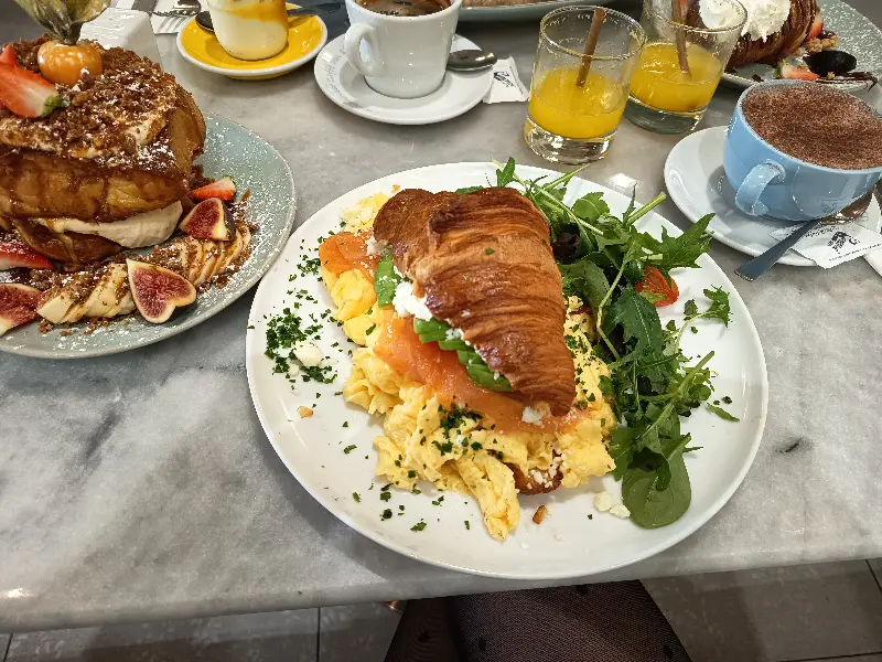 니스에서의 아침, 햇살이 따스하게 뺨을 간지럽히는 기분 좋은 날, 브런치를 즐기기 위해 라 비다(La Vida)의 문을 열었습니다. 문을 열자마자 은은하게 퍼지는 커피 향과 달콤한 빵 굽는 냄새가 코끝을 간지럽히며 기분 좋은 설렘을 안겨주었습니다.