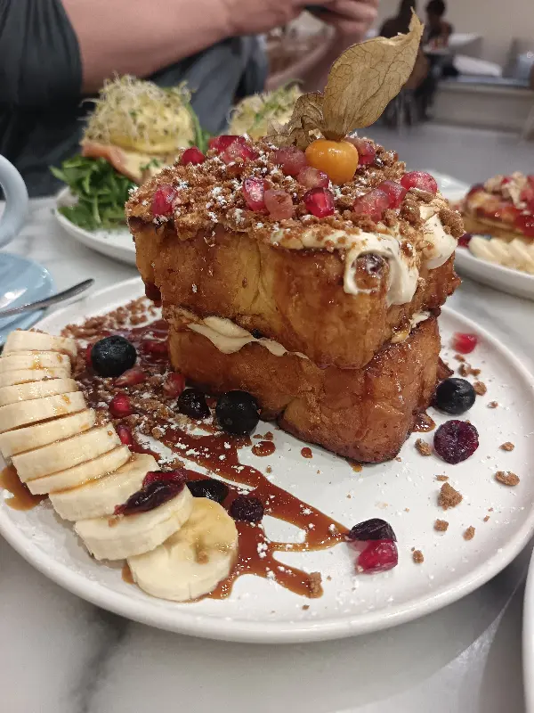 고민 끝에 프렌치 토스트와 런치 볼을 주문했습니다. 잠시 후, 먹음직스러운 비주얼의 음식들이 테이블 위에 놓였습니다. 프렌치 토스트는 겉은 바삭하고 속은 촉촉했으며, 달콤한 시럽과 신선한 과일이 듬뿍 올려져 있어 입안 가득 행복한 달콤함이 퍼져나갔습니다. 런치 볼은 신선한 야채와 닭가슴살, 아보카도 등이 조화롭게 어우러져 건강하면서도 맛있는 한 끼 식사를 완성했습니다.