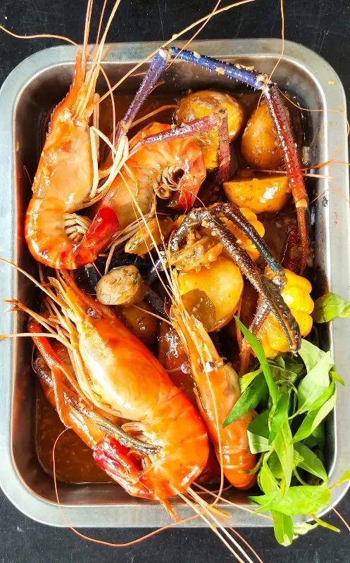 가장 먼저 눈에 띈 것은 이 집의 대표 메뉴인 케이준 스타일 새우 요리였습니다. 붉은 빛깔을 뽐내는 새우들이 먹음직스럽게 담겨 나왔습니다. 갓 구운 빵과 함께 제공되는 이 요리는, 매콤하면서도 고소한 향이 코를 자극했습니다. 새우 한 마리를 집어 입에 넣으니, 탱글탱글한 식감과 함께 입안 가득 퍼지는 풍미가 일품이었습니다.