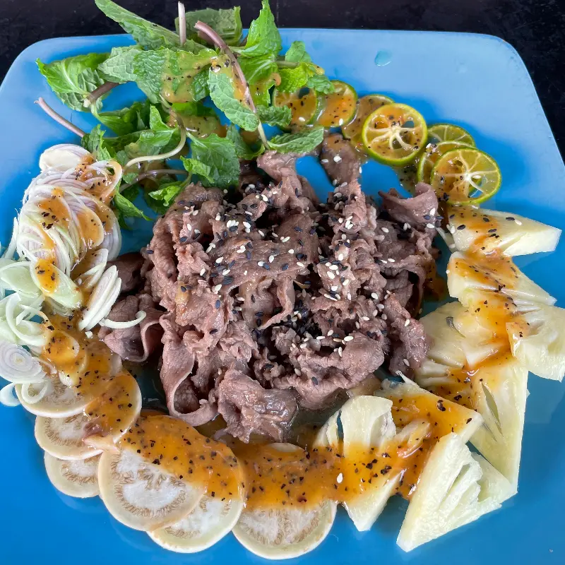 레스토랑은 강둑을 따라 자리 잡고 있어, 시원한 강바람이 기분 좋게 불어왔습니다. 테이블에 앉아 메뉴를 펼쳐보니, 베트남 음식을 현대적으로 재해석한 요리들이 눈길을 사로잡았습니다. 니키 트란 셰프의 이름이 적힌 것을 보니, 레스토랑 급의 요리를 기대해도 좋겠다는 생각이 들었습니다.
