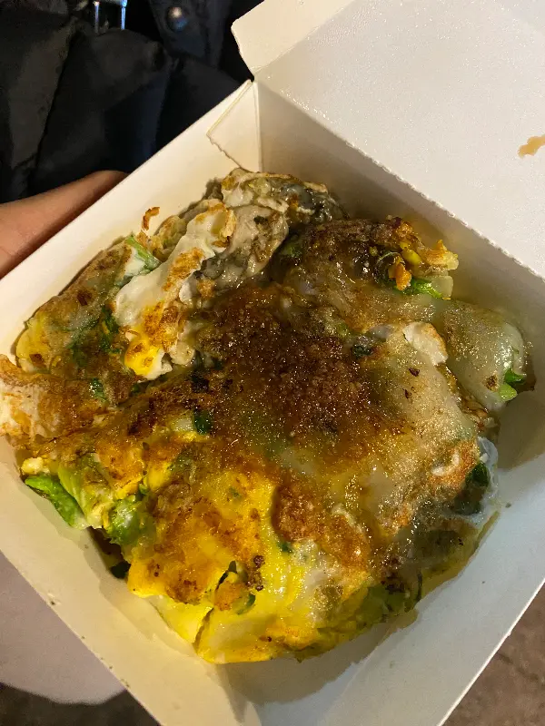 아쉬운 점도 있었습니다. 굴의 크기가 생각보다 크지 않았습니다. 굴을 좋아하는 저로서는 조금 더 큼지막한 굴이 들어갔으면 하는 바람이 있었습니다. 또한, 95위안이라는 가격은 야시장 음식임을 감안할 때 다소 높은 편이라고 생각합니다.
