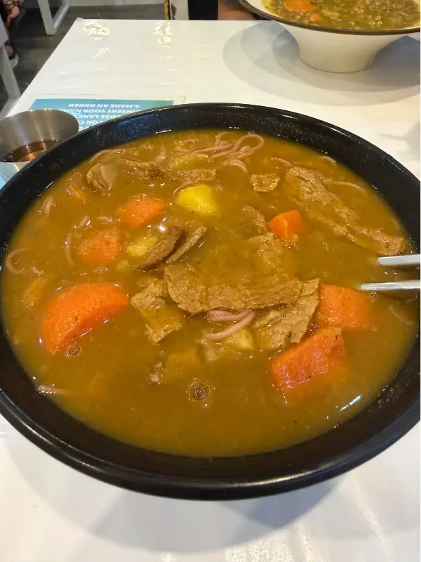 젓가락으로 살살 비벼 한 입 맛보니, 정말 쌀 한 톨, 고기 한 점 없이 고급스럽고 깔끔한 샐러드를 먹는 기분이었다. 신선한 채소들의 아삭한 식감과 고소한 두부, 상큼한 레몬그라스 소스가 환상적인 조화를 이루었다. 특히 매운 고추를 듬뿍 넣어 먹으니 느끼함은 싹 가시고 입안이 개운해졌다. 늦은 점심시간이라 그런지 기다림 없이 바로 주문할 수 있었다.
