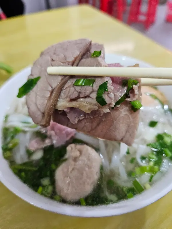 젓가락으로 면을 휘저어 보니, 얇고 부드러운 쌀국수 면이 모습을 드러냈습니다. 국물을 한 모금 마시니, 깊고 진한 육수의 풍미가 입안 가득 퍼져 나갔습니다. 한국에서 먹던 쌀국수와는 차원이 다른 맛이었죠. 고기는 잡내 없이 부드러웠고, 신선한 채소는 아삭아삭 씹히는 식감이 좋았습니다. 특히 민트와 고수는 쌀국수의 풍미를 한층 더 끌어올리는 역할을 했습니다.
