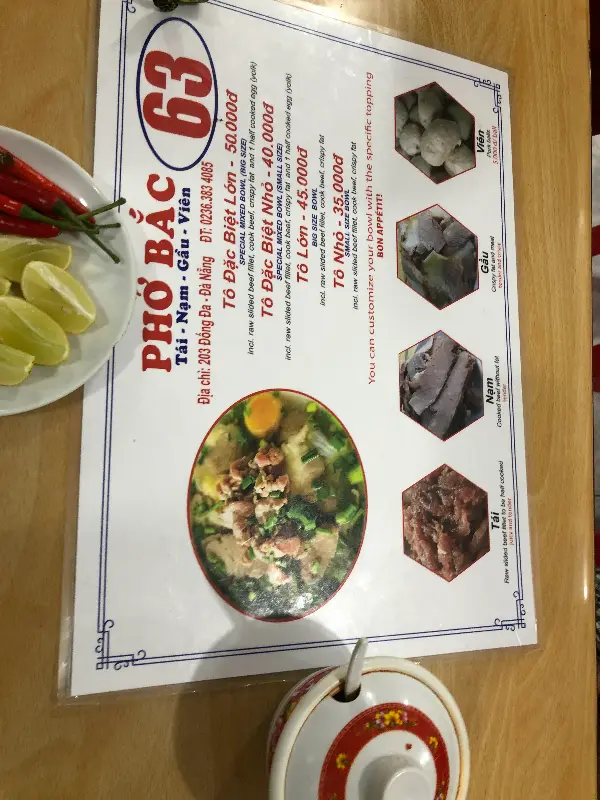 가게 벽에는 메뉴 사진과 가격 정보가 붙어 있었고, 한쪽에는 쌀국수에 넣어 먹는 다양한 토핑 재료들이 진열되어 있었습니다. 저는 포박63에서 단순한 식사를 넘어, 베트남 현지인들의 삶을 엿볼 수 있는 소중한 경험을 했습니다.