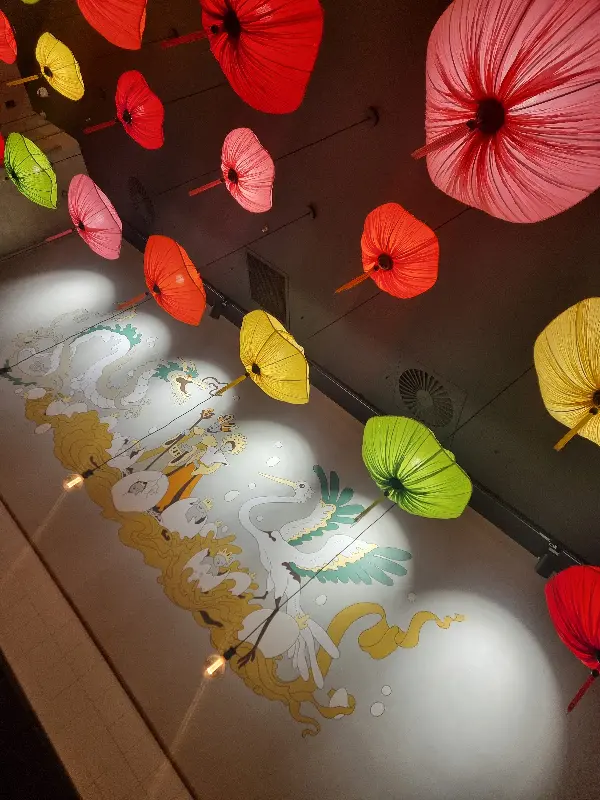 퇴근 후, 낯선 풍경 속으로 떠나는 미식 여행을 꿈꾸며 서울의 숨겨진 베트남 요리 맛집으로 향했다. 웅장한 용 그림이 그려진 벽면 위로 알록달록한 우산 조명이 시선을 사로잡는 이 곳은, 문을 열고 들어서는 순간부터 베트남 현지의 활기찬 분위기가 물씬 느껴졌다. 붉은색, 초록색, 노란색 우산들이 천장에 매달려 만들어내는 몽환적인 분위기는 마치 베트남의 어느 골목길에 들어선 듯한 착각을 불러일으켰다.