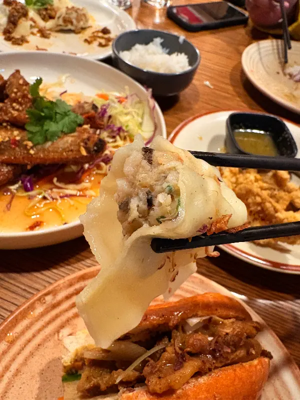 정말 환상적이었어요. 풍미도 좋고 신선하고 요리도 잘 됐어요. 슬로우 쿠킹 립, 새우 만두, 반미, 그리고 매콤한 그린 칠리 소스를 곁들인 칼라마리는 강력 추천합니다!