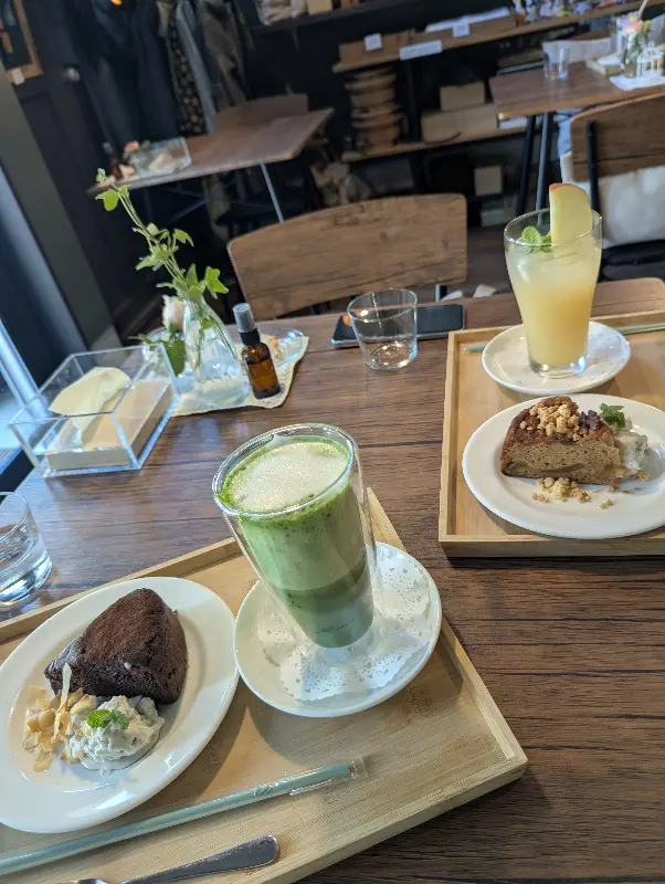 애플 케이크는 겉은 바삭하고 속은 촉촉했습니다. 한 입 베어 무니 입안 가득 퍼지는 사과의 향긋함과 달콤함은 지금까지 먹어본 글루텐 프리 케이크 중 최고라고 감히 말할 수 있습니다. 핫초코 또한 깊고 진한 초콜릿의 풍미가 일품이었습니다. 추운 날씨에 언 몸을 녹여주는 따뜻함과 달콤함에 기분까지 좋아졌습니다.