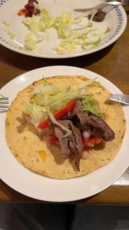 다음으로 나온 퀘사디아는 밀가루 토르티야 안에 치즈와 다양한 채소가 듬뿍 들어 있었다. 따뜻하고 부드러운 퀘사디아는 입안 가득 풍성한 맛을 선사했다. 특히, 곁들여 나온 살사 소스는 신선하고 매콤하여 퀘사디아의 맛을 한층 더 끌어올렸다.