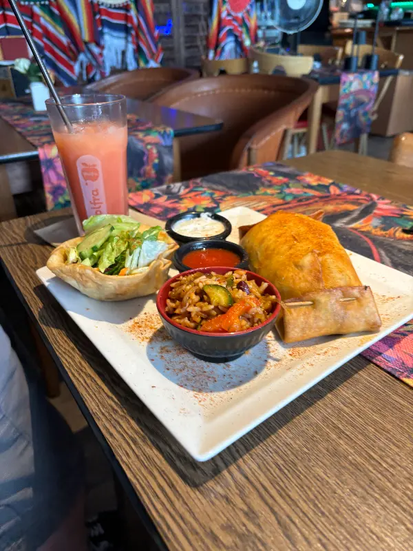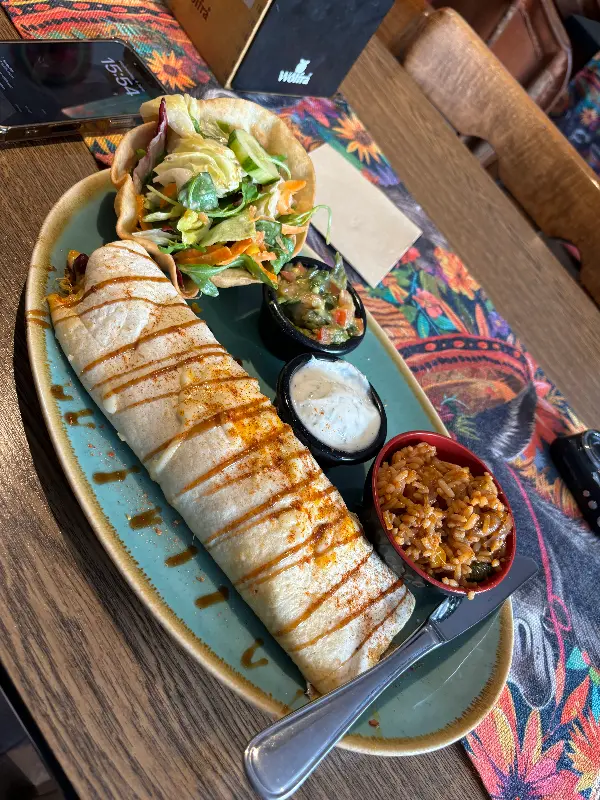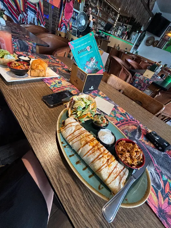 며칠 후, 언니와 함께 “Amigos”를 다시 방문했다. 이번에는 치킨 바나나 부리또와 버거를 주문했는데, 역시나 실망시키지 않았다. 버거는 빵이 살짝 토스트되어 겉은 바삭하고 속은 촉촉했으며, 모든 재료가 신선하고 육즙이 가득했다.