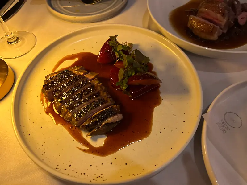 겉은 바삭하고 속은 촉촉한 오리 가슴살 스테이크, 섬세한 칼질에서 셰프의 정성이 느껴집니다.