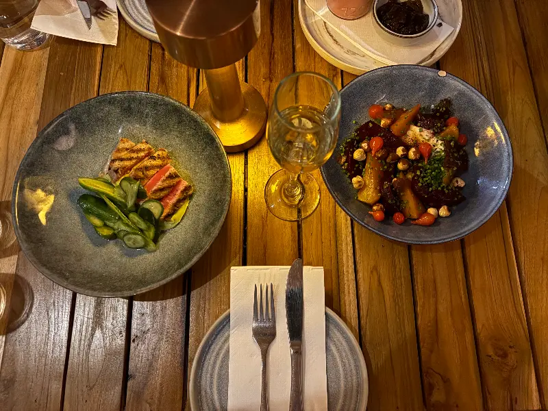 많은 이들이 극찬했던 양고기 엉덩이살, 오리 가슴살, 스테이크 중에서 고민하다, 저는 양고기 엉덩이살을 선택했습니다. 겉은 바삭하고 속은 촉촉하게 익은 양고기는, 한 입 베어 무는 순간 입안 가득 퍼지는 풍부한 육즙과 고소함이 일품이었습니다.