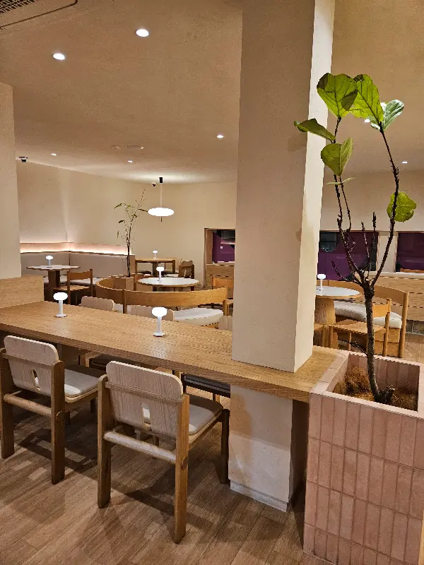 가게 내부는 온통 파스텔톤으로 꾸며져 있었습니다. 벽면은 은은한 핑크, 테이블은 부드러운 크림색, 조명은 따스한 노란빛을 띠고 있었죠. 마치 뮤직비디오 세트장이나 동화책 속 그림 같은 분위기였습니다. 리뉴얼 오픈을 했다더니, 이전보다 훨씬 깨끗하고 쾌적해진 느낌입니다. 넉넉한 테이블 간 간격 덕분에 편안하게 대화를 나눌 수 있을 것 같았습니다. 데이트를 즐기거나 단체 모임을 갖기에도 안성맞춤이라는 생각이 들었습니다.