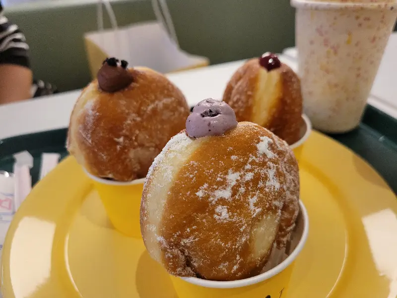 드디어 기다리던 도넛이 나왔습니다. 클래식 바닐라 도넛은 부드러운 빵 속에 달콤한 바닐라 크림이 가득 들어 있었습니다. 한 입 베어 무는 순간, 입 안 가득 퍼지는 바닐라 향이 황홀했습니다. 저당 초코 크림 도넛은 달콤하면서도 쌉싸름한 초코 크림이 매력적이었습니다. 너무 달지 않아서 질리지 않고 계속 먹을 수 있었죠.