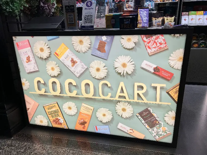 고아 여행의 설렘을 가득 안고 도착한 모파 공항. 짐을 찾고 나오자마자 제 눈길을 사로잡은 곳이 있었습니다. 바로 ‘코코 카트(Coco Cart)’였죠. 화려한 조명 아래 형형색색의 초콜릿들이 진열된 모습은 마치 동화 속 과자집을 연상케 했습니다. 초콜릿을 워낙 좋아하는 저로서는 그냥 지나칠 수 없는 곳이었어요.