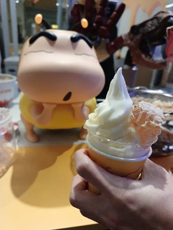 드디어 주문한 벌집 아이스크림이 나왔다. 뽀얀 우유 아이스크림 위에 황금빛 벌집이 얹혀진 모습은 마치 예술 작품과도 같았다. 벌집의 꿀이 아이스크림 위로 흘러내리는 모습은 보기만 해도 군침이 돌았다. 사진을 찍기 전에 먹어버렸다는 리뷰처럼, 나 역시 황홀한 비주얼에 압도되어 사진 찍는 것을 잊을 뻔했다.