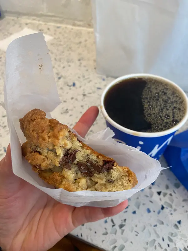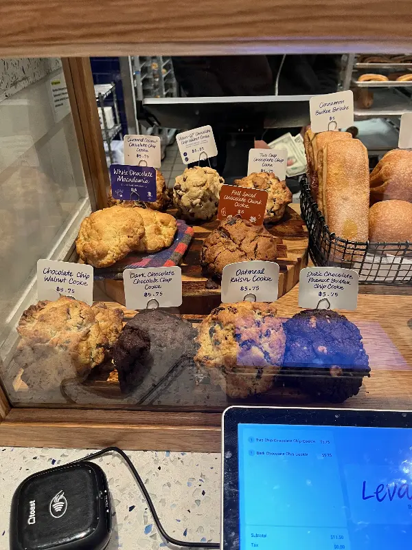 퇴근 후, 찌뿌둥한 몸을 이끌고 향한 곳은 바로 Levain Bakery. 평소 달콤한 디저트를 즐겨 먹는 나에게 이곳은 이미 ‘인생 쿠키’ 성지로 자리 잡은 곳이다. 문을 열고 들어서는 순간, 따뜻한 버터 향이 코를 간지럽히며 하루의 피로를 잊게 해준다. 오늘은 어떤 쿠키가 나를 행복하게 해줄까? 설레는 마음으로 쇼케이스 앞에 섰다.