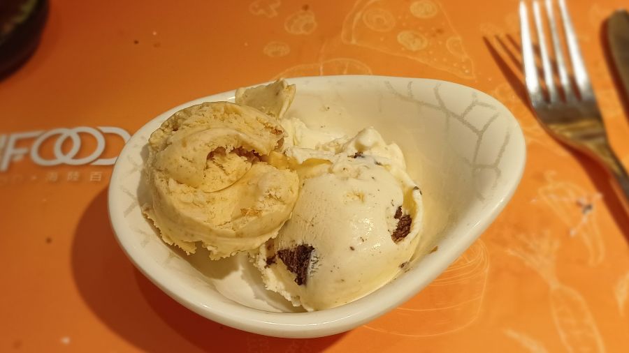 풍성한 식사 후에는 달콤한 디저트가 빠질 수 없습니다. 펑푸드에서는 하겐다즈 아이스크림을 무료로 즐길 수 있다는 점이 특히 인상 깊습니다. 부드러운 바닐라와 초코칩이 박힌 아이스크림은 혀끝을 즐겁게 하며 식사의 완벽한 마무리를 선사합니다.