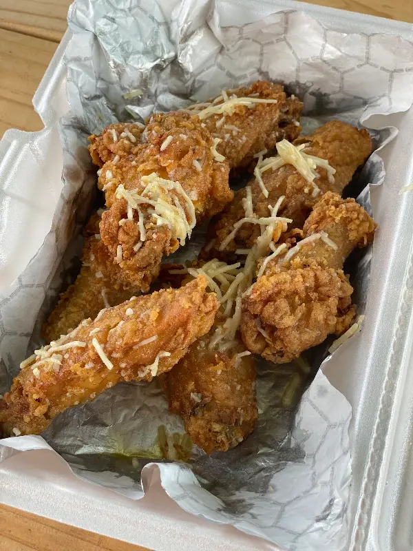 겉은 바삭, 속은 촉촉! 마늘 오일 파마산 윙의 환상적인 비주얼.