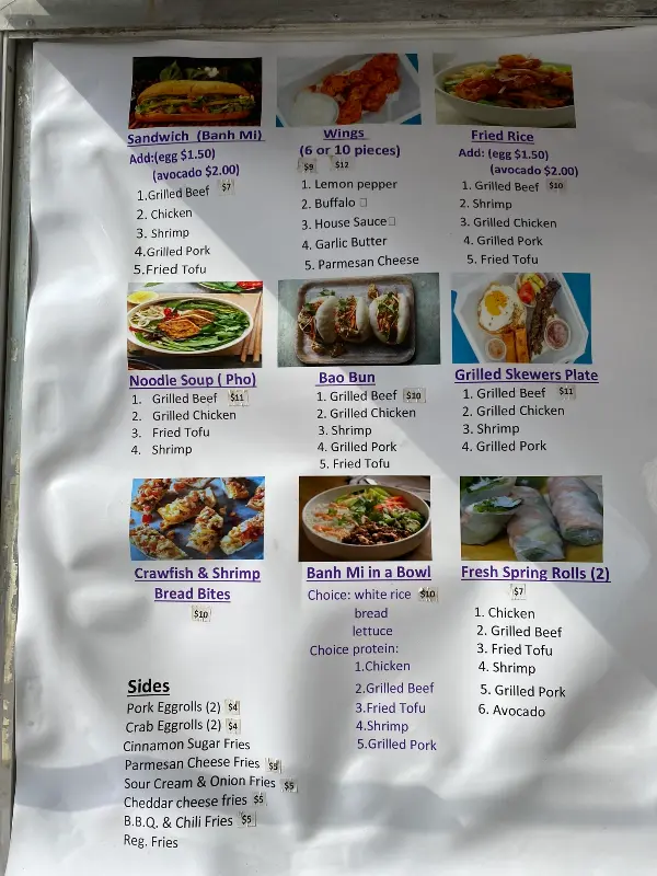 푸드트럭 앞에 서니, 메뉴판이 한눈에 들어왔다. 윙, 볶음밥, 바오번, 반미, 쌀국수까지… 다양한 메뉴들이 나의 미각을 자극했다. 첫 방문이었기에, 어떤 메뉴를 골라야 할지 고민이 되었다.