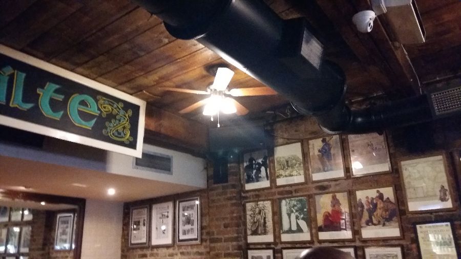 펍의 천장을 올려다보면, 나무로 만들어진 천장과 낡은 선풍기가 눈에 들어옵니다. 벽에는 오래된 사진과 그림들이 빼곡하게 걸려 있어, 펍의 역사를 짐작하게 합니다. 펍의 곳곳에는 세월의 흔적이 느껴지는 소품들이 놓여 있어, 아늑하고 편안한 분위기를 자아냅니다.