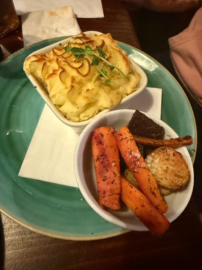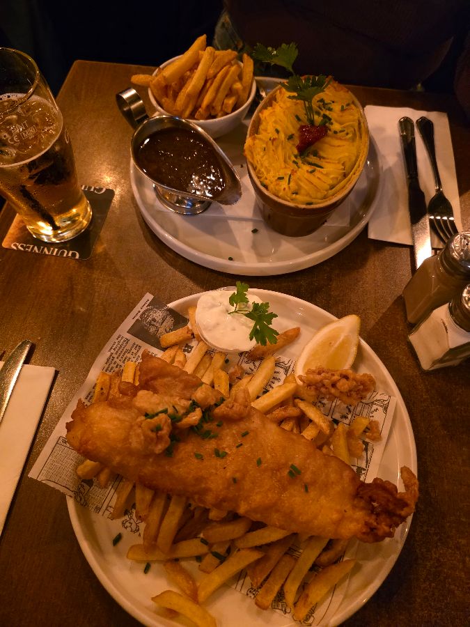 메뉴판을 펼쳐 들고 고민에 빠졌습니다. 셰퍼드 파이, 기네스 스튜 등 아일랜드 전통 음식들이 눈길을 사로잡았습니다. 결국, 가장 인기 있다는 셰퍼드 파이와 기네스 스튜를 주문했습니다. 잠시 후, 따뜻한 김을 내뿜으며 음식이 나왔습니다. 셰퍼드 파이는 겉은 바삭하고 속은 촉촉한 감자 층 아래, 양고기와 채소가 풍성하게 들어 있었습니다. 기네스 스튜는 흑맥주의 깊은 풍미가 느껴지는 진한 국물이 인상적이었습니다.