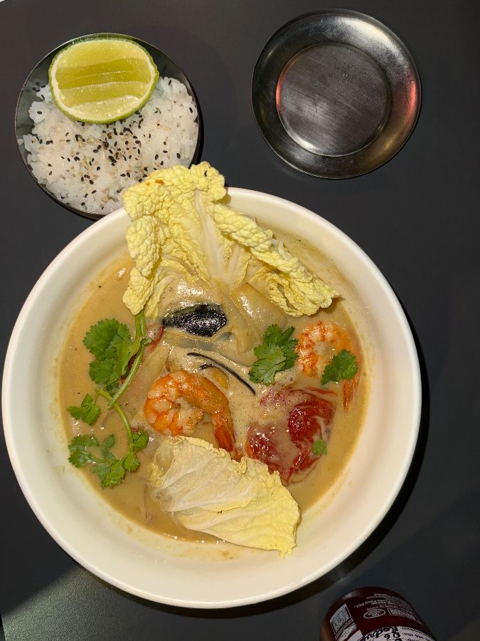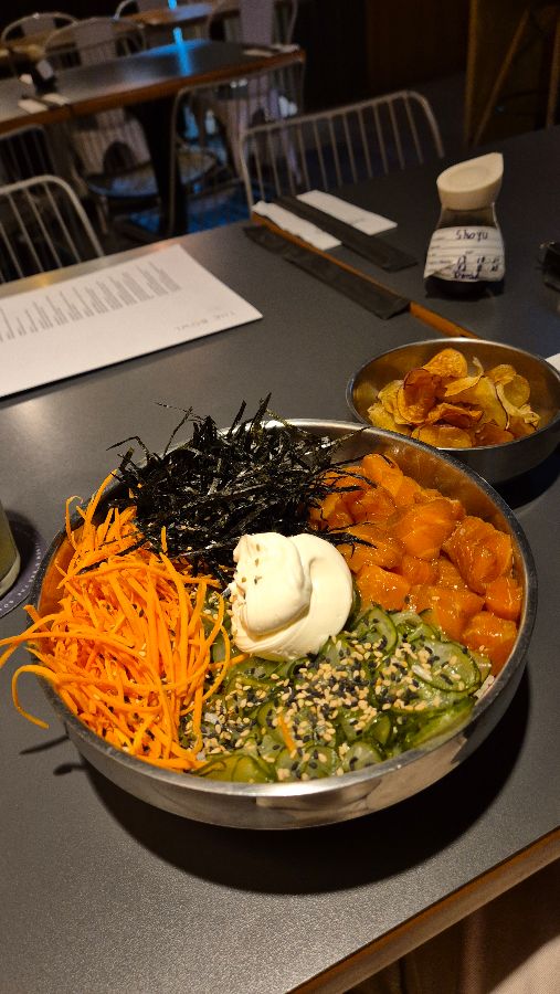 이타임 비비(Itaim Bibi)의 한적한 일요일 오후, 문을 열고 들어선 ‘더 볼(The Bowl)’은 밖의 소란스러움과는 다른 차분한 공기로 손님을 맞이합니다. 잔잔하게 흐르는 배경 음악과 은은한 조명은 따뜻하고 아늑한 분위기를 조성하며, 마치 오래된 친구의 집에 온 듯한 편안함을 선사합니다. 벽에 걸린 동양적인 포스터와 정갈하게 놓인 테이블, 그리고 카운터에 나란히 앉아 복을 부르는 듯한 마네키네코 인형들은 이곳이 단순한 식당이 아닌, 섬세한 감각으로 꾸며진 특별한 공간임을 넌지시 알려줍니다. 많은 이들이 이곳에서 식사를 하면서 기분 좋은 경험과 만족감을 느끼는 데는 다 이유가 있습니다. 붐비는 시간대에도 줄을 서지 않고 바로 입장할 수 있었던 행운은, 이미 시작부터 긍정적인 예감을 안겨주기에 충분했습니다.
