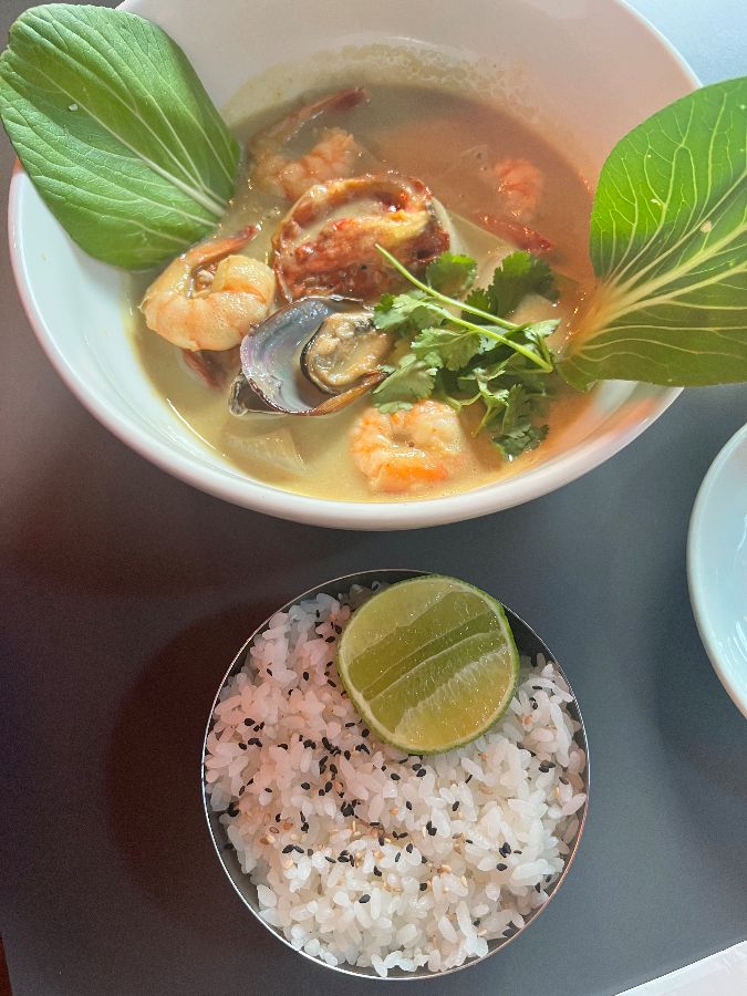 ‘구이오자’와 ‘치킨까스’ 역시 이곳의 숨겨진 보석 같은 메뉴입니다. 특히 구이오자는 그 이름처럼 환상적인 맛을 자랑하며, 겉은 바삭하고 속은 부드러운 치킨까스 역시 훌륭한 선택이 될 것입니다. 타이 커리는 적절한 간으로 균형 잡힌 맛을 내지만, 새우와 같은 해산물이 조금 더 풍성했으면 좋겠다는 아쉬움도 있습니다. 하지만 전반적으로 모든 메뉴가 높은 만족도를 선사하며, 다음 방문에는 다른 메뉴를 시도해보고 싶은 기대감을 갖게 합니다.