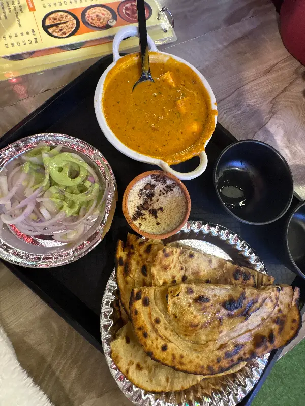 특히 인상 깊었던 것은 달 마카니(Daal Makhani)였습니다. 진하면서도 놀라울 정도로 가벼운 식감은, 유기농 재료가 맛과 건강 모두를 만족시킬 수 있다는 것을 증명해주는 듯했습니다. 한 입 맛보는 순간, 입안 가득 퍼지는 풍미와 부드러운 질감에 감탄사가 절로 나왔습니다. 사진에서 보이는 윤기 흐르는 달 마카니는 그 깊은 맛을 짐작하게 합니다. 함께 제공된 신선한 양파 샐러드는 느끼함을 잡아주어 더욱 풍성한 맛을 느낄 수 있게 했습니다.