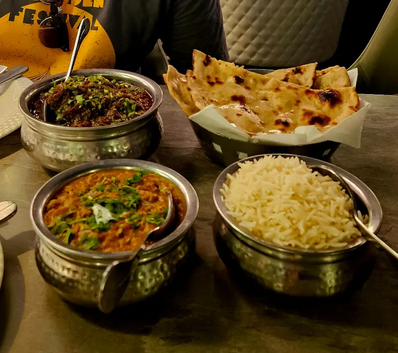 Only Bar의 메뉴는 다양한 인도 요리로 가득했다. 우리는 고민 끝에 하리 미르치 카 부나 머튼과 파니르 버터 마살라를 주문했다. 잠시 후, 테이블 위로 따끈따끈한 요리들이 차려졌다.