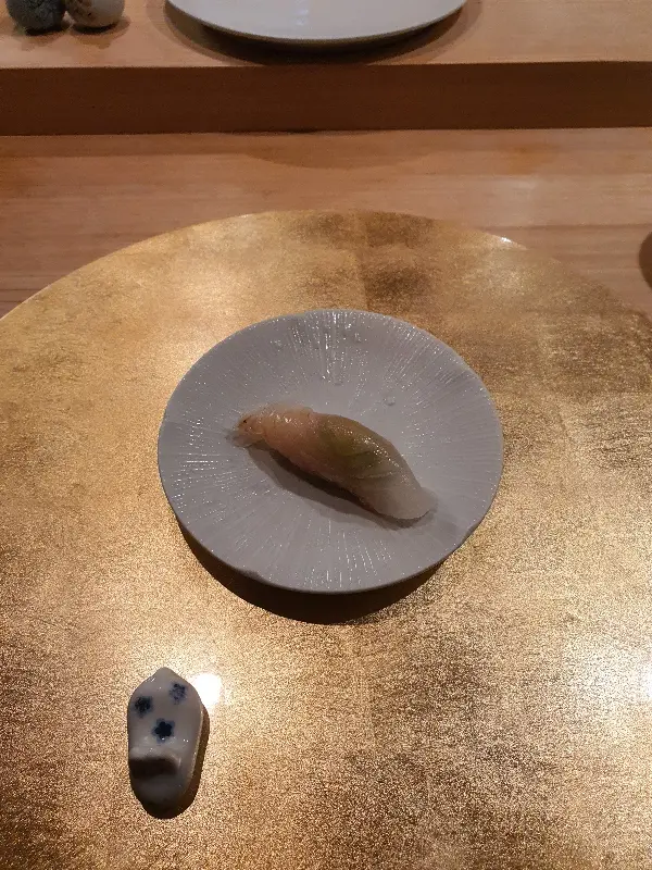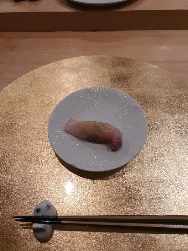 오마카세의 시작을 알리는 첫 번째 스시는 광어였습니다. 투명하게 빛나는 광어의 자태는 신선함을 그대로 보여주는 듯했습니다. 셰프님은 초밥을 놓는 각도까지 세심하게 신경 쓰시는 모습이었습니다. 젓가락으로 조심스럽게 집어 입으로 가져갔습니다. 입안에 넣는 순간, 부드러운 광어의 살결이 혀를 감싸고, 은은한 단맛이 입안 가득 퍼져나갔습니다.