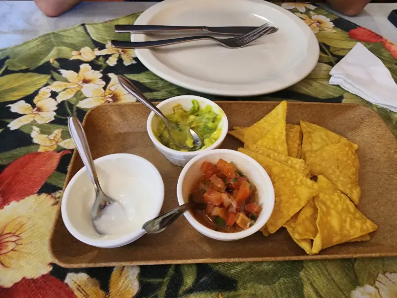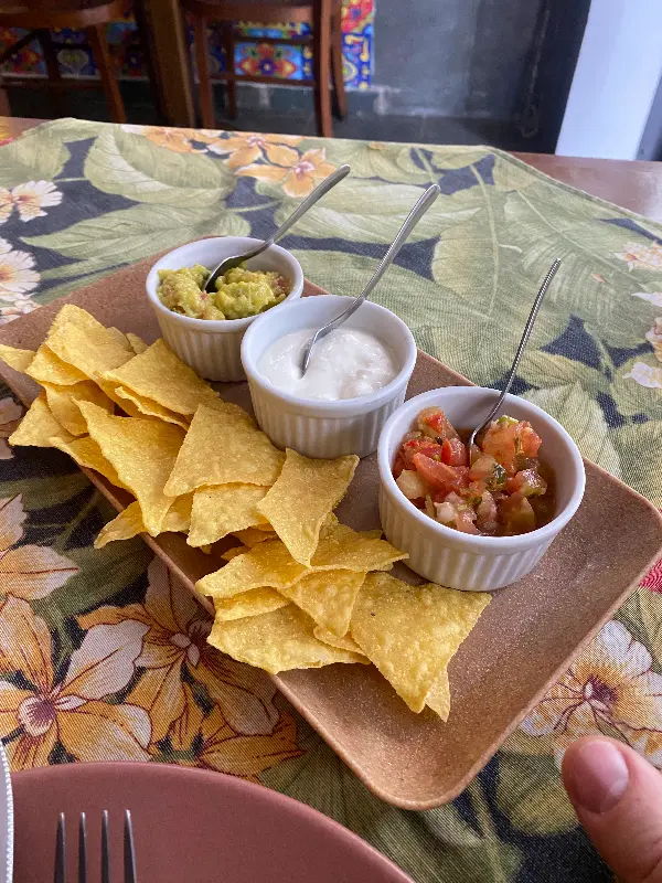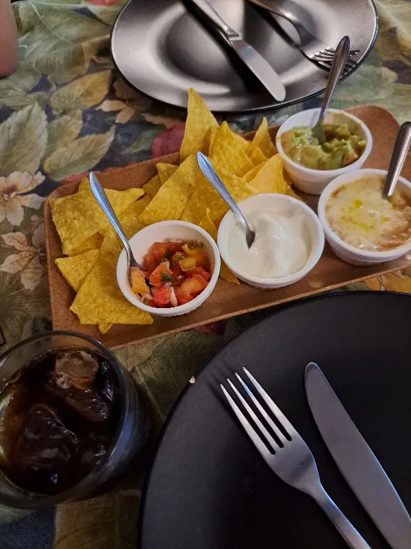 가장 먼저 눈에 띈 것은 나초와 함께 제공되는 세 가지 소스였다. 신선한 아보카도로 만든 과카몰리, 부드러운 사워크림, 그리고 매콤한 살사 소스. 짭짤한 나초에 소스를 듬뿍 찍어 먹으니, 입안 가득 퍼지는 풍미가 일품이었다. 특히 과카몰리는 아보카도의 신선함이 그대로 느껴져서 정말 맛있었다.