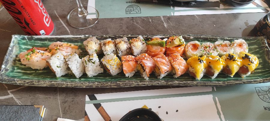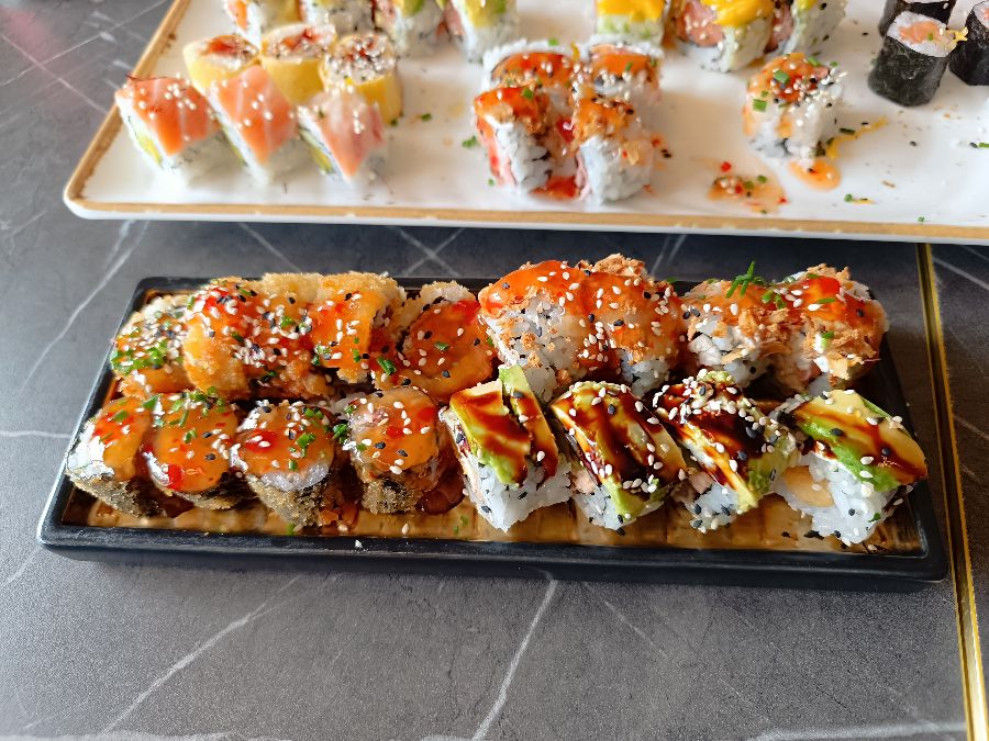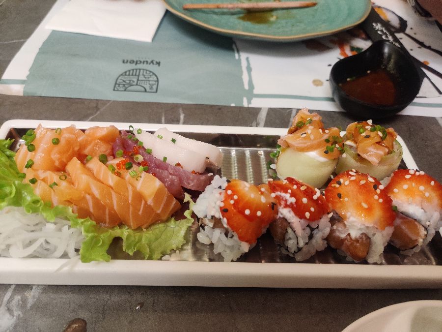 Kyuden의 가장 큰 자랑 중 하나는 바로 무한리필 스시 메뉴입니다. 가격 대비 만족도가 매우 높다는 평이 지배적이며, “무제한 스시 가격이 정말 가성비 최고예요”라는 극찬은 그 명성을 증명합니다. 주문을 마치기가 무섭게, 신선한 재료로 정성껏 만들어진 스시와 롤이 빠르게 테이블 위로 등장합니다. 이곳은 음식도 아주 빨리 나오는 편이라, 기다림에 지칠 틈도 없이 맛있는 음식을 즐길 수 있습니다.