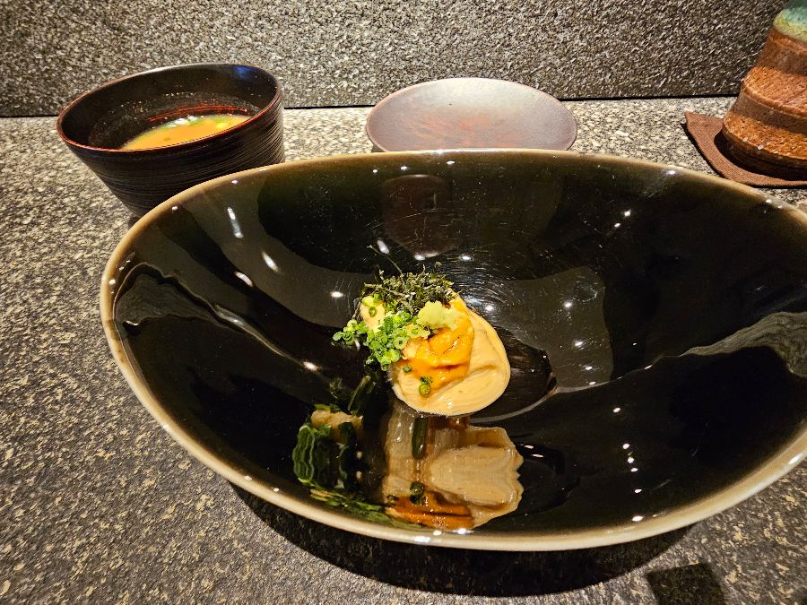 이어 따뜻한 차완무시가 나왔다. 부드러운 거품이 몽글몽글 얹어진 작은 그릇은 보는 것만으로도 포근함을 주었다. 한 숟가락 떠보니 입안 가득 퍼지는 섬세하고 따뜻한 맛은 혀끝을 부드럽게 감싸며 속을 편안하게 달래주었다. “각 요리의 디자인이 매우 정교하고 스타일이 다양하고 맛도 다르고 놀라움이 가득하다”는 표현처럼, 모든 요리가 오감을 만족시키는 예술 작품과도 같았다.