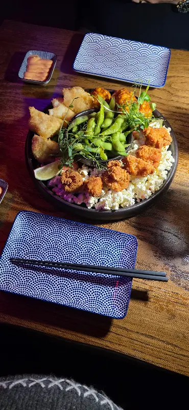 특히 팝콘 치킨은 예상외의 최고의 메뉴였다. 바삭한 튀김옷과 촉촉한 닭고기의 조화는 훌륭했고, 함께 제공된 소스와의 궁합 또한 완벽했다. 참치 토핑이 올라간 바삭한 밥볼 또한 맛있었지만, 팝콘 치킨의 강렬한 인상에는 미치지 못했다.