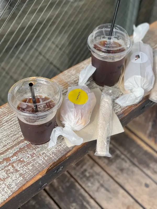 매장 앞에는 조그마한 나무 의자 몇 개가 놓여 있었습니다. 테이크 아웃 전문점이라 앉아서 먹을 공간은 부족했지만, 오히려 그 점이 도쿄 특유의 여유로움을 느끼게 해주었습니다. 좁은 골목길 사이, 작지만 개성 넘치는 공간에서 커피와 샌드위치를 즐기는 사람들. 그 모습 자체가 한 폭의 그림 같았습니다.
