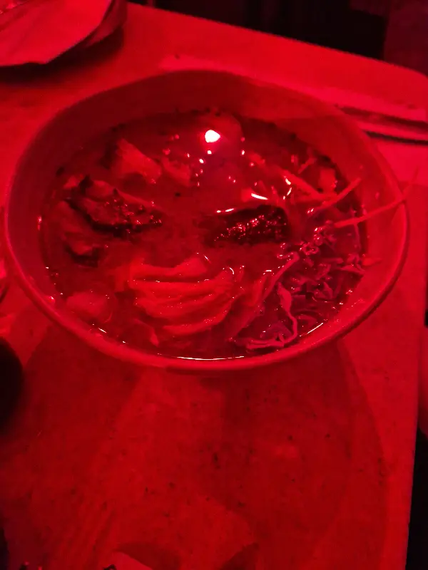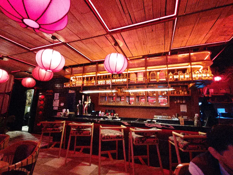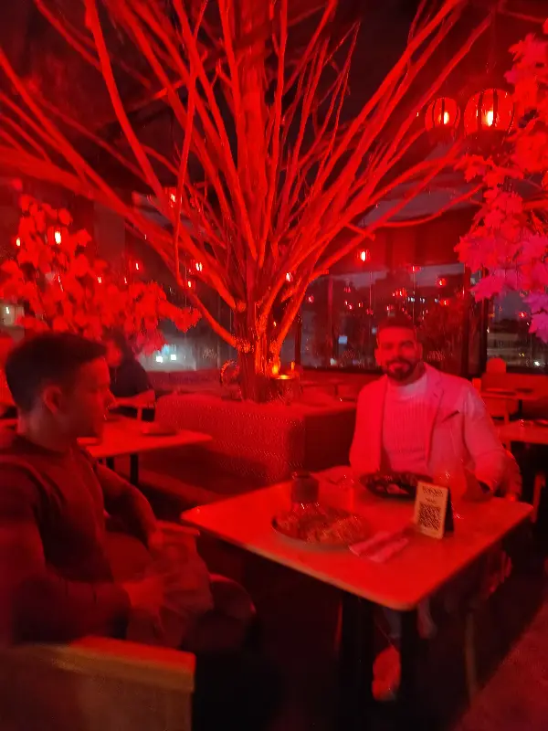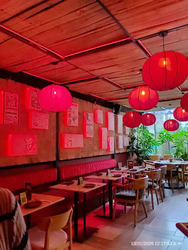 레스토랑에 들어서자 가장 먼저 눈에 들어온 것은 강렬한 붉은 조명이었다. 마치 도쿄의 밤거리를 재현해 놓은 듯한 몽환적인 분위기는, 일상에서 벗어나 특별한 시간을 보내고 싶어 하는 이들에게 완벽한 공간을 선사한다. 한 방문객은 붉은 조명이 눈에 거슬린다고 했지만, 오히려 나는 그 붉은빛 덕분에 더욱 몰입할 수 있었다. 천장에는 붉은 빛을 발하는 등불이 매달려 있고, 은은하게 빛나는 조명 덕분에 레스토랑 전체가 따뜻하게 감싸는 듯한 느낌을 받았다.