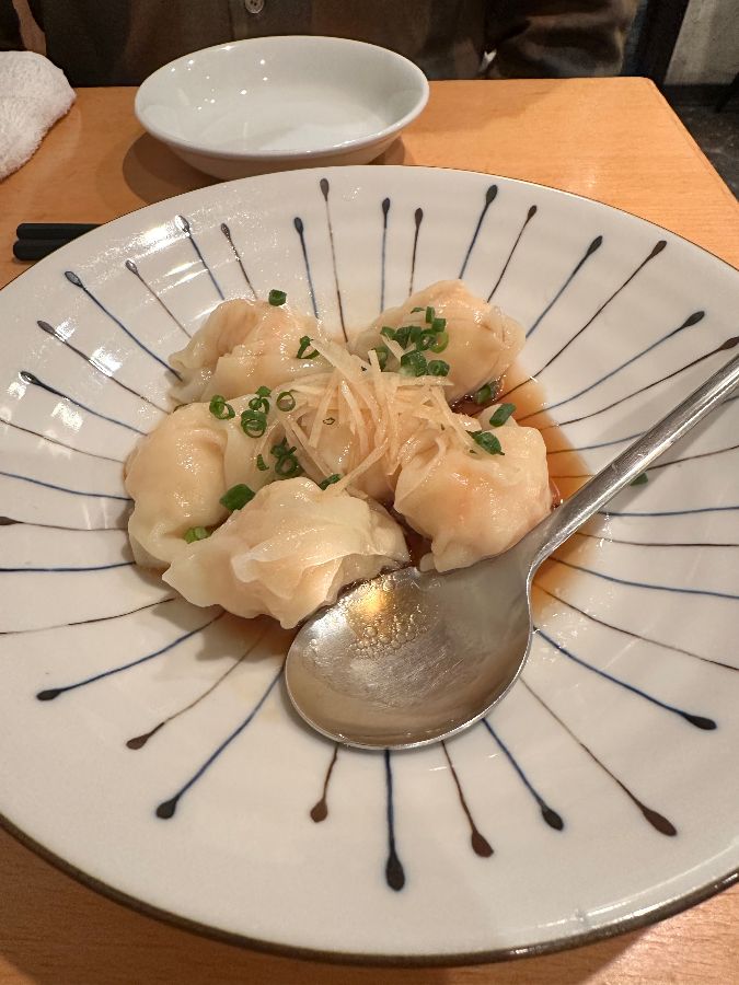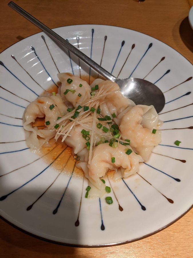 튀김 만두는 바삭하게 튀겨져 고소한 향이 일품이었고, 그 위에는 신선한 고수가 올라가 맛의 균형을 잡아주었습니다. 소스에 찍어 먹으니 바삭함과 촉촉함이 동시에 느껴지는 환상의 맛이었습니다. 카한의 딤섬은 특히 인기가 많았는데, 새우 딤섬은 얇고 투명한 피 속에 통통한 새우가 가득 들어있어 씹을 때마다 탱글탱글한 식감과 새우의 달큰한 맛이 느껴졌습니다. 곁들여 나온 간장 소스와 채 썬 생강이 딤섬의 맛을 한층 더 돋보이게 했습니다.