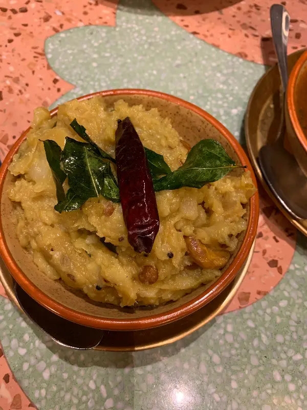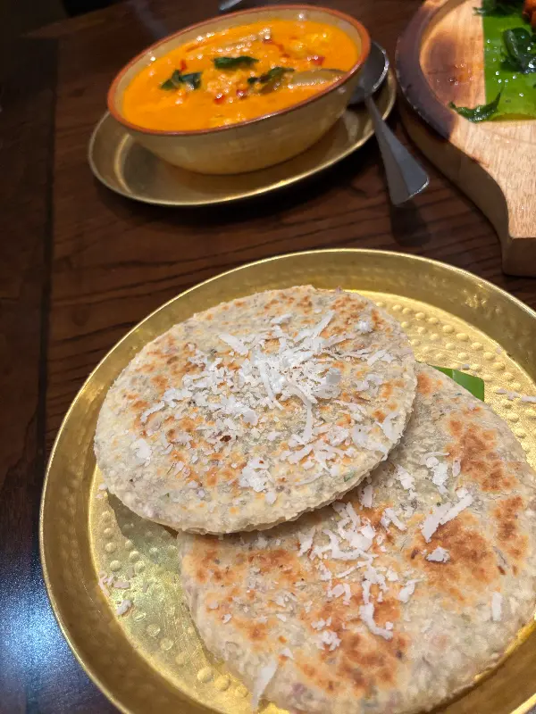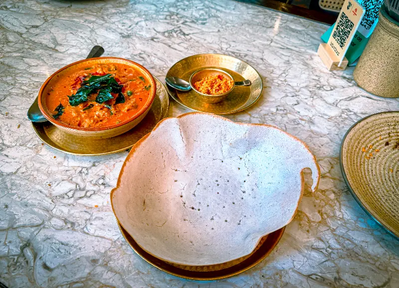 호퍼스는 스리랑카 음식점에서 빼놓을 수 없는 메뉴입니다. 얇고 바삭한 크레페 안에 코코넛 밀크와 달걀을 넣어 만든 호퍼스는, 그 자체로도 훌륭한 맛을 자랑합니다. 특히 이곳 호퍼스는 겉은 바삭하면서도 속은 촉촉하고, 코코넛 밀크의 은은한 단맛이 입안 가득 퍼지는 것이 특징입니다.
