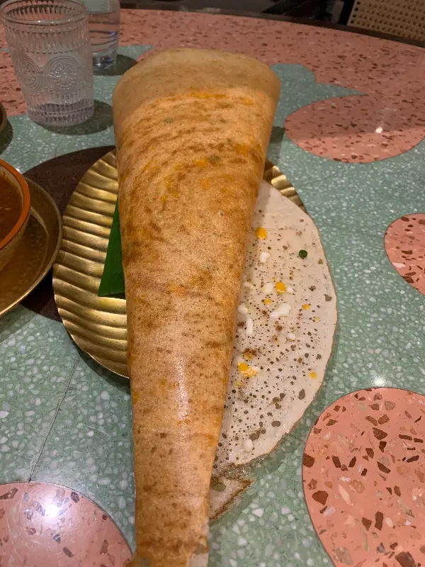 식사를 마치고, 입가심으로 마살라 차이와 코코넛 아이스크림 호퍼를 주문했습니다. 은은한 향신료 향이 감도는 마살라 차이는 입안을 깔끔하게 정리해주는 역할을 했고, 달콤한 코코넛 아이스크림 호퍼는 완벽한 마무리를 선사했습니다. 특히 호퍼 위에 올려진 코코넛 아이스크림은 부드럽고 달콤했으며, 호퍼의 바삭함과 환상적인 조화를 이루었습니다.